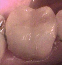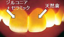 (右図、向かって右が天然歯、左がジルコニア+セラミック)